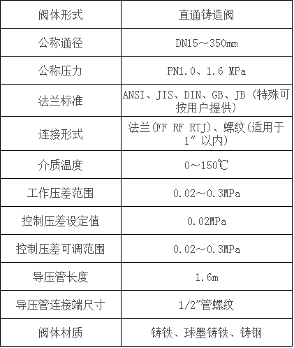 ZTY47-10/16自力式壓差控制閥主要技術參數: