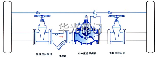 800X-10/16Q壓差旁通平衡閥安裝示意圖: